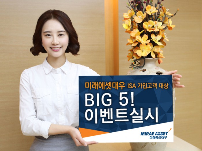 (서울=포커스뉴스) 미래에셋대우가 오는 6월말까지 ISA 가입고객 대상으로 특별한 혜택이 있는 ISA BIG5! 이벤트를 진행한다.