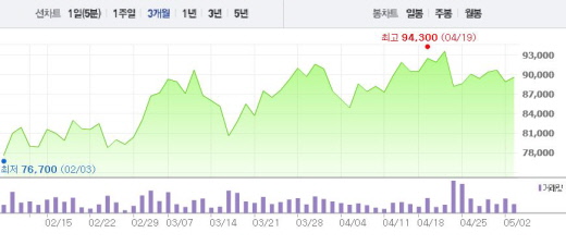 3일 오전 9시24분 현재 대림산업은 전날보다 1.10%(900원) 상승한 8만9800원에 거래되고 있다.