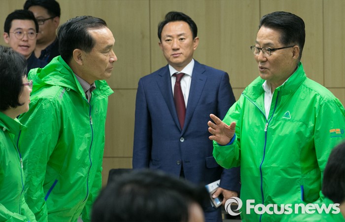 (서울=포커스뉴스) 박지원(오른쪽) 국민의당 원내대표가 3일 오전 서울 여의도 국회 의원회관에서 열린 정책역량 강화 집중워크샵에 참석해 20대 국회 초선 당선인들과 대화하고 있다.