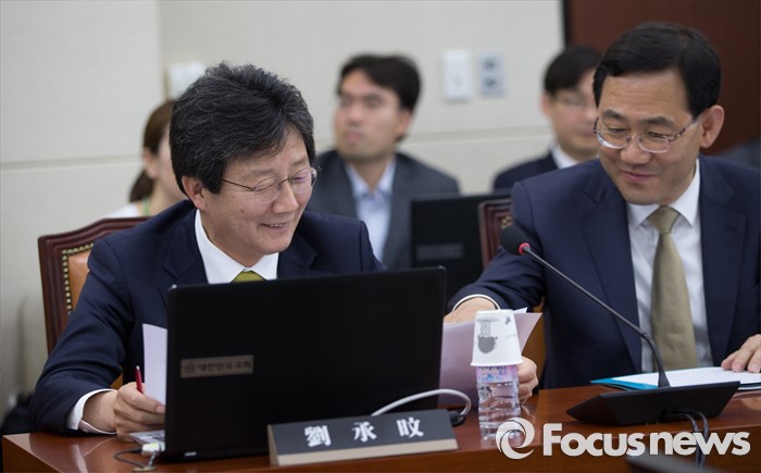 (서울=포커스뉴스) 유승민(왼쪽) 무소속 의원이 3일 오전 서울 여의도 국회에서 열린 국방위원회 전체회의에 참석해 주호영 무소속 의원과 대화하고 있다.