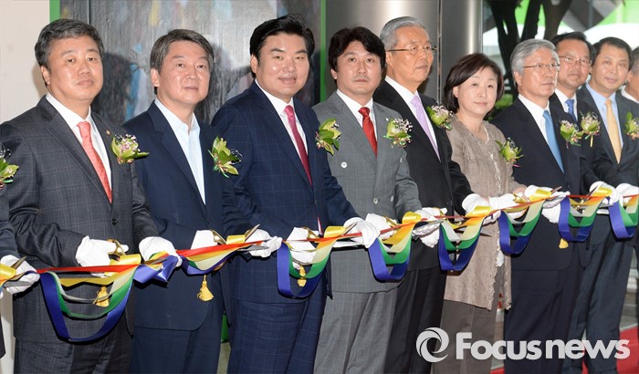 (서울=포커스뉴스) 3일 오전 서울 강남구 코엑스에서 열린 '52회 한국보도사진전 개막식'에 참석한 정규성(왼쪽부터) 한국기자협회장, 안철수 국민의당 상임공동대표, 원유철 새누리당 대표최고위원 권한대행, 이동희 한국사진기자협회장, 김종인 더불어민주당 비대위 대표, 심상정 정의당 상임대표, 이병규 한국신문협회장, 김부겸 더불어민주당 당선인, 김동규 건국대 언론홍보대학원장이 테이프 컷팅을 하고 있다. '찰나의 기록, 시대의 진실'을 주제로 진행된 이번 전시는 시대의 진실을 기록한다는 사명감으로 역사의 현장을 묵묵히 지키며 취재한 수백만 컷 중 선정된 150여점과 '현장의 사진기자', '역대 대상 수상작' 등 250여점의 사진이 전시된다.