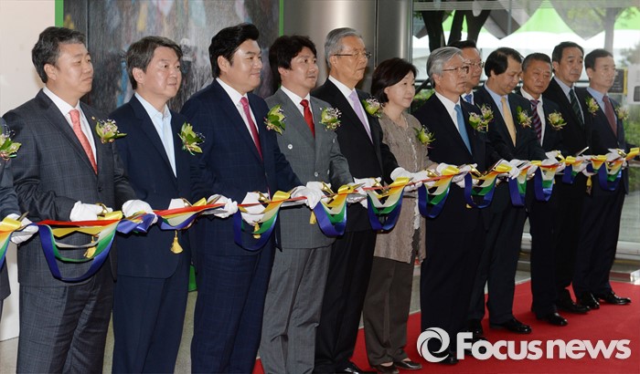 (서울=포커스뉴스) 3일 오전 서울 강남구 코엑스에서 열린 '52회 한국보도사진전 개막식'에 참석한 정규성(왼쪽부터) 한국기자협회장, 안철수 국민의당 상임공동대표, 원유철 새누리당 대표최고위원 권한대행, 이동희 한국사진기자협회장, 김종인 더불어민주당 비대위 대표, 심상정 정의당 상임대표, 이병규 한국신문협회장, 김부겸 더불어민주당 당선인, 김동규 건국대 언론홍보대학원장, 김문권 한국보도사진가협회장, 키타바타 히데유키 니콘이미징코리아 대표, 강동환 캐논코리아 컨슈머이미징 대표가 테이프 컷팅을 하고 있다. '찰나의 기록, 시대의 진실'을 주제로 진행된 이번 전시는 시대의 진실을 기록한다는 사명감으로 역사의 현장을 묵묵히 지키며 취재한 수백만 컷 중 선정된 150여점과 '현장의 사진기자', '역대 대상 수상작' 등 250여점의 사진이 전시된다.