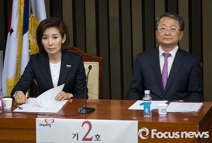 | △ 나란히 앉은 나경원과 김재경 |