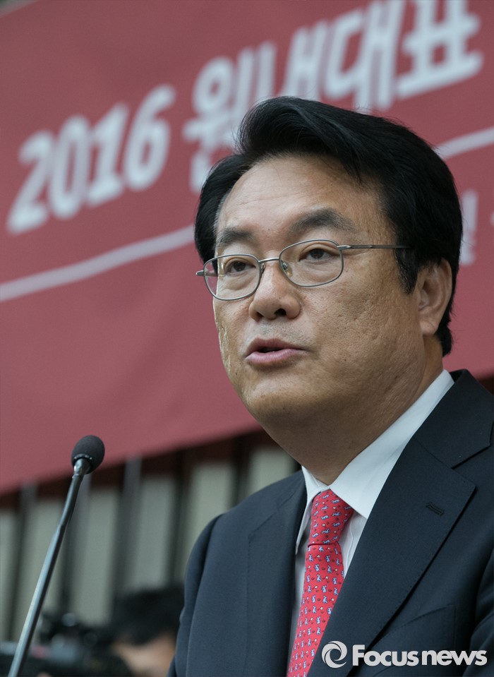 (서울=포커스뉴스) 3일 오후 서울 여의도 국회에서 열린 새누리당 20대 국회 첫 원내대표 및 정책위의장 선출을 위한 당선자 총회에서 선출된 정진석 신임 원내대표가 소감을 전하고 있다.