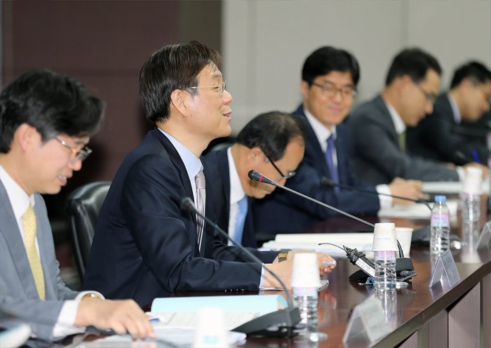 이날 회의에는 이태식 KOTRA 부사장, 임득문 중소기업진흥공단 부이사장, 이재출 무역협회 전무, 소한섭 중소기업중앙회 본부장, 이미영 무역보험공사 본부장을 비롯한 12개 수출지원기관 관계자 20여명이 참석했다. <사진제공=산업통상자원부>