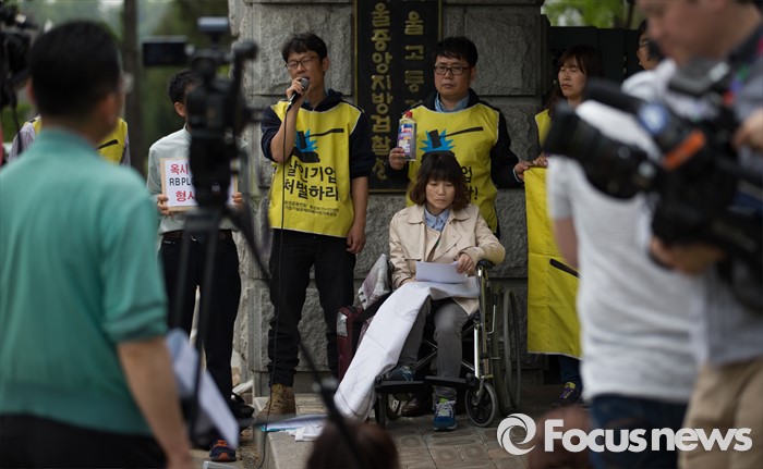 가습기살균제 피해자 모임은 4일 옥시레킷벤키저 본사가 있는 영국으로 떠난다.(서울=포커스뉴스) 2일 오후 서울 서초구 서울중앙지방검찰청 앞에서 가습기살균제 피해자와 가족모임과 환경보건시민센터 관계자들이 옥시레킷벤키저 대표 등 8명의 이사진 형사고발 기자회견을 하고 있다. 2016.05.02 오장환 기자