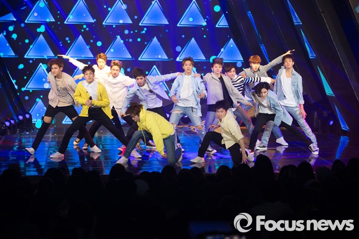 (서울=포커스뉴스) 3일 오후 서울 마포구 SBS 프리즘 타워에서 열린 SBS MTV 생방송 더쇼에 참여한 아이돌그룹 세븐틴의 멤버들이 무대를 선보이고 있다.
