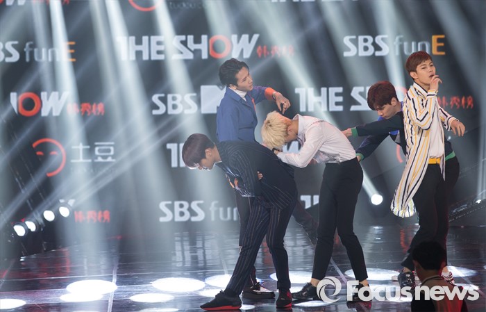 (서울=포커스뉴스) 3일 오후 서울 마포구 SBS 프리즘 타워에서 열린 SBS MTV 생방송 더쇼에 참여한 아이돌 그룹 빅스의 멤버들이 무대를 선보이고 있다.