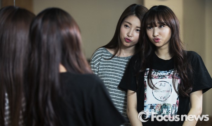 (서울=포커스뉴스) 3일 오전 서울 강남구 DSP엔터테인먼트 사옥에서 프로듀스 101의 윤채경(왼쪽)과 조시윤이 인터뷰를 하고 있다.
