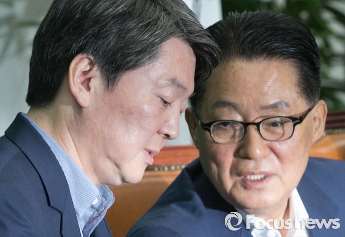 (서울=포커스뉴스) 안철수(왼쪽) 국민의당 상임공동대표와 박지원 원내대표가 4일 오전 서울 여의도 국회에서 열린 최고위원회의에 참석해 대화하고 있다.
