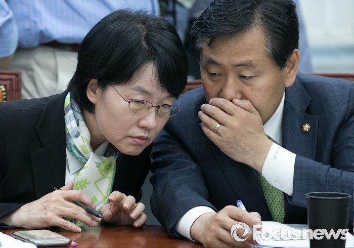 (서울=포커스뉴스) 박선숙(왼쪽) 국민의당 사무총장과 김관영 원내수석부대표가 4일 오전 서울 여의도 국회에서 열린 최고위원회의에 참석해 대화하고 있다.
