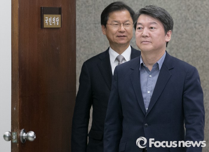 (서울=포커스뉴스) 안철수(오른쪽) 국민의당 상임공동대표와 천정배 공동대표가 4일 오전 서울 여의도 국회에서 열린 최고위원회의에 참석하고 있다.