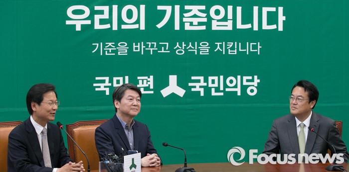 (서울=포커스뉴스) 정진석(오른쪽) 새누리당 신임 원내대표가 4일 오전 서울 여의도 국회에서 안철수(가운데) 국민의당 상임공동대표와 천정배 공동대표를 예방, 면담을 하고 있다.