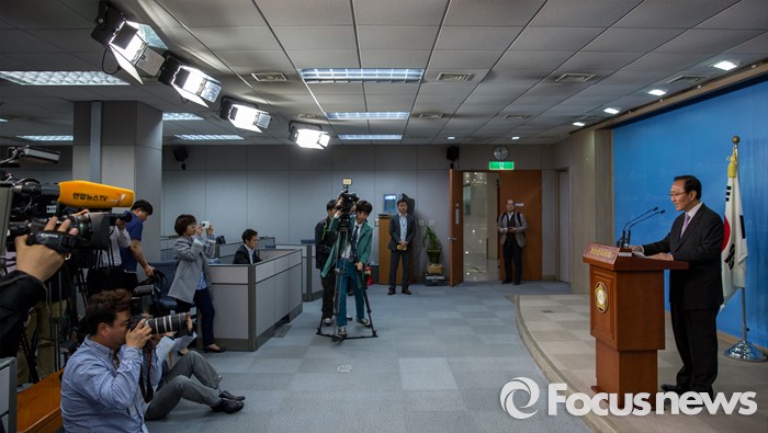 (서울=포커스뉴스) 노회찬 정의당 신임 원내대표가 4일 오전 서울 여의도 국회에서 원내대표 당선 기자회견을 하고 있다.