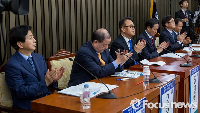 | △ 박수치는 더민주 원내대표 후보들 |