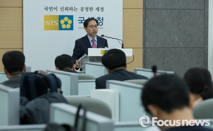 (세종=포커스뉴스) 김한년 국세청 소득지원국장이 4일 오전 세종시 정부세종 2청사 국세청 기자실에서 2016년 근로·자녀장려금 신청 관련 브리핑을 하고 있다.