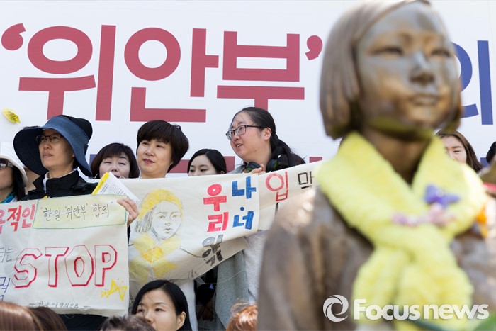 (서울=포커스뉴스) 4일 오후 서울 종로구 옛 일본대사관 앞에서 제1229차 일본군 위안부 문제해결을 위한 정기 수요집회가 열리고 있다.