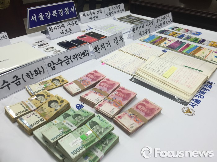 서울 강북경찰서는 지난 27일 가정집에서 미등록 환전소를 운영하며 불법수익을 챙긴 전모(53·여)씨와 아들 김모(24)씨를 외국환관리법 위반과 사기 혐의 등으로 구속했다고 4일 밝혔다.