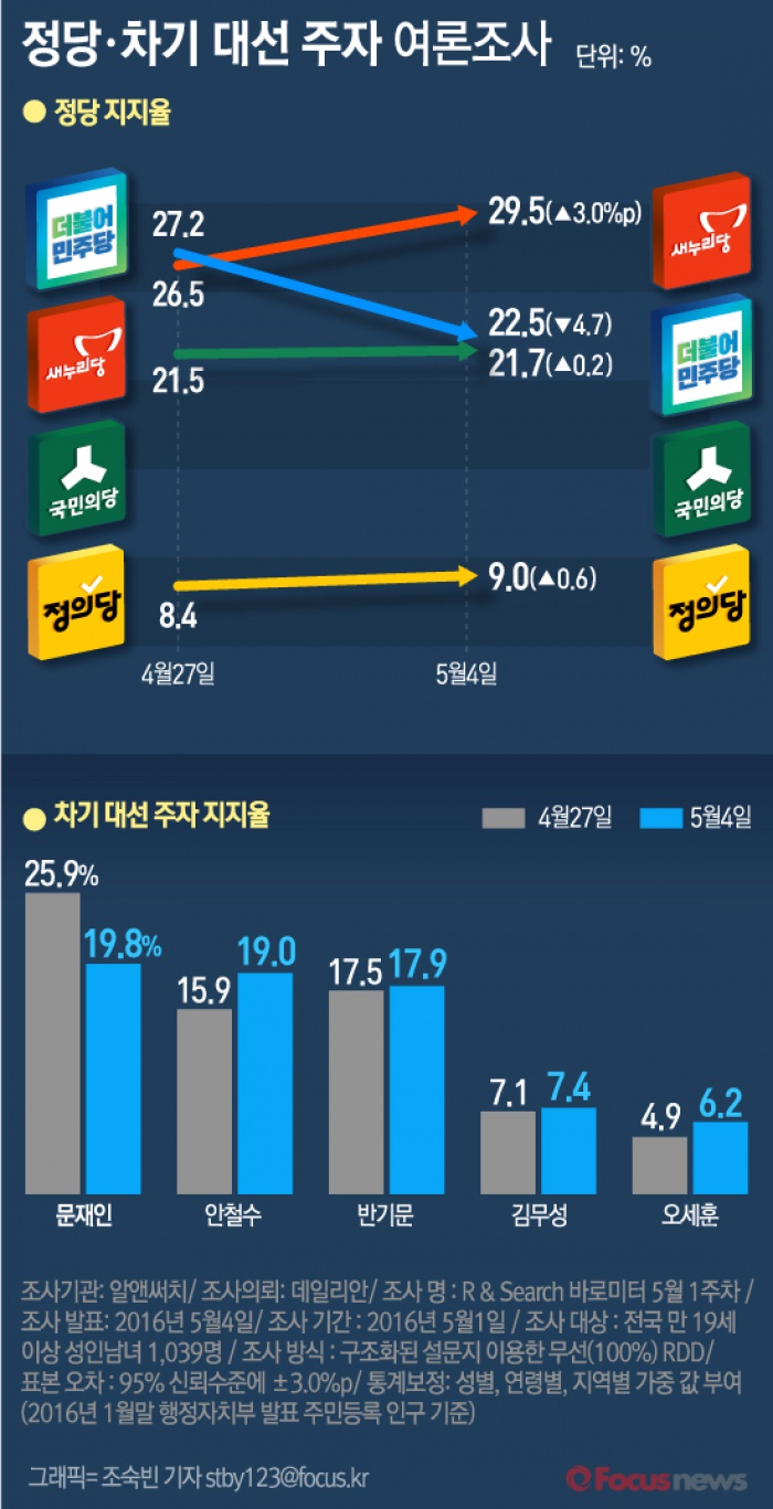 | △ [그래픽] 정당·차기 대선 주자 여론조사 |