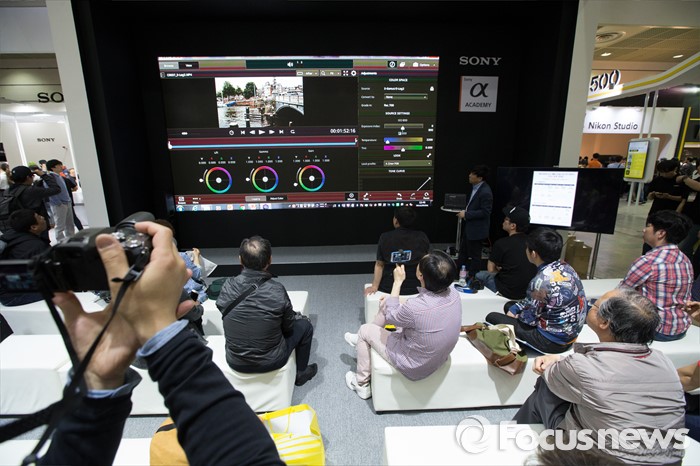 (서울=포커스뉴스) 4일 오후 서울 강남구 코엑스 A,B홀에서 열린 2016 서울국제사진영상기자재전(P&I)에 한 업체가 관람객들에게 포토샵 강의를 하고 있다.