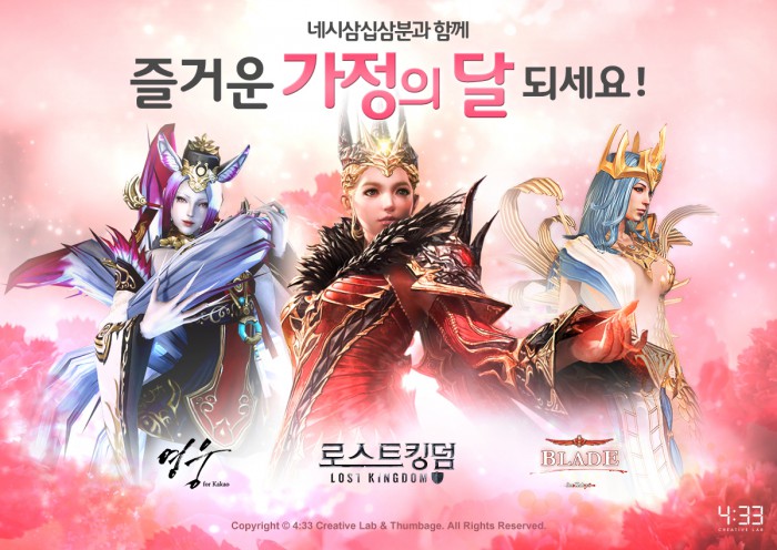 우선 네시삼십삼분은 '로스트킹덤', '영웅 for Kakao', '블레이드 for Kakao' 등 자사 인기 모바일게임 3종에서 대규모 이벤트를 진행한다.