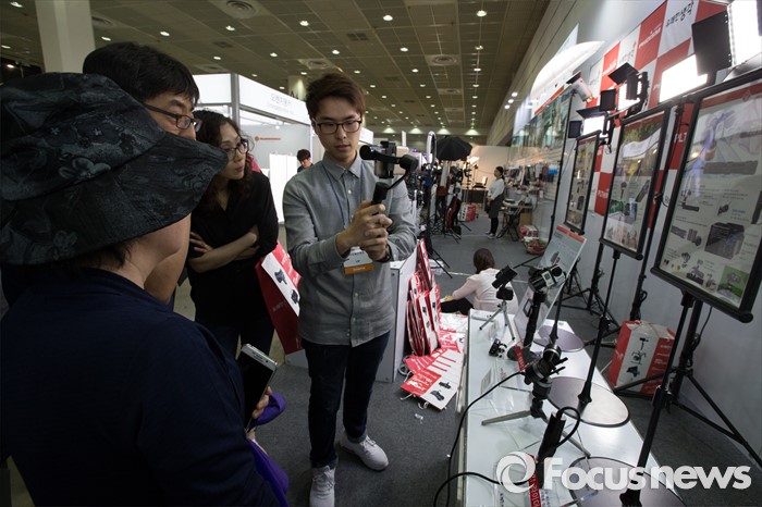 (서울=포커스뉴스) 4일 오후 서울 강남구 코엑스 A,B홀에서 열린 2016 서울국제사진영상기자재전(P&I)에서 관람객들이 다양한 제품을 구경하고 있다.