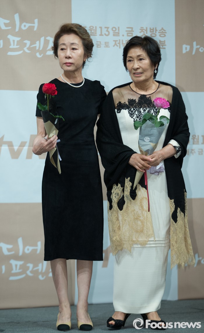 (서울=포커스뉴스) 4일 오후 서울 강남구 임피리얼 팰리스 호텔에서 열린 tvN 10주년 특별기획 '디어 마이 프렌즈' 제작발표회에 참석한 배우 윤여정(왼쪽)과 김혜자가 포토타임을 갖고 있다.