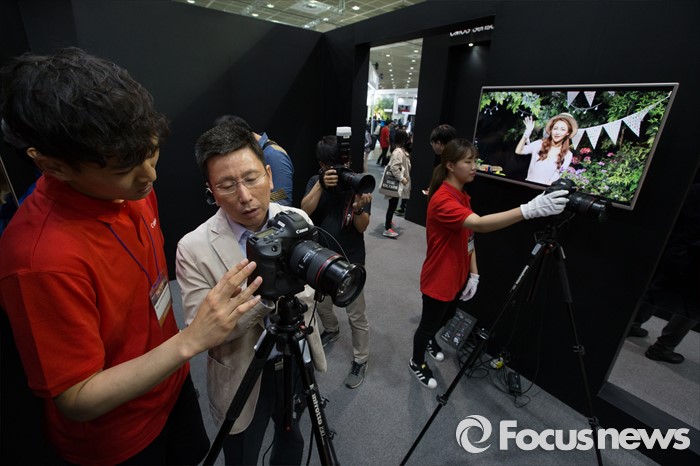 (서울=포커스뉴스) 4일 오후 서울 강남구 코엑스 A,B홀에서 열린 2016 서울국제사진영상기자재전(P&I)에서 관람객들이 제품을 구경하고 있다.