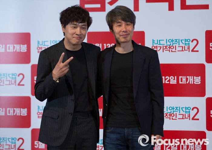(서울=포커스뉴스) 4일 오후 서울 광진구 롯데시네마 건대입구점에서 열린 영화 '엽기적인 그녀2' 언론시사회에 참석한 배우 차태현(왼쪽)과 조근식 감독이 포토타임을 갖고 있다.