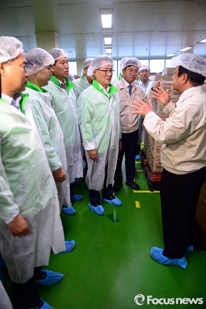 (인천=포커스뉴스) 박지원 국민의당 원내대표를 비롯한 20대 총선 당선인들이 4일 오후 인천 남동구 (주)서울화장품 인천공장에서 열린 국민의당 정책역량강화 집중 워크샵 '중소기업 대표 및 근로자와의 간담회'에서 화장품 제조 라인을 둘러보고 있다.