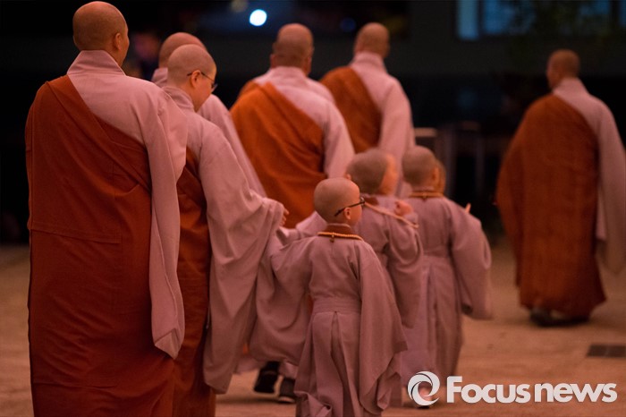 (서울=포커스뉴스) 4일 오후 서울 종로구 조계사에서 연등 점등식이 열리고 있다.