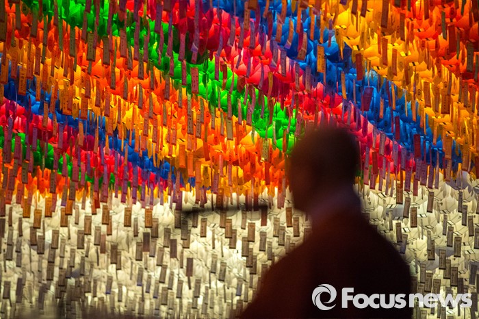 (서울=포커스뉴스) 4일 오후 서울 종로구 조계사에서 열린 연등 점등식에서 조계사 주지 스님이 축사를 하고 있다.