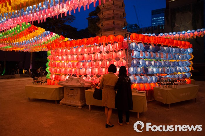 (서울=포커스뉴스) 4일 오후 서울 종로구 조계사에서 연등 점등식이 열리고 있다.