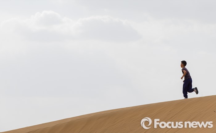 (다라더치/중국=포커스뉴스) 중국 내몽고 다라더치 쿠부치사막에서 만난 어린이들의 천진난만한 모습들. 누군가에게 사막은 땀과 고난의 땅이지만 동심에겐 훌륭한 놀이터가 된다. 모래밭 같은 삶 속에서 잠시 잊혀진 동심을 꺼내, 저 어린이들과 함께 달려본다.