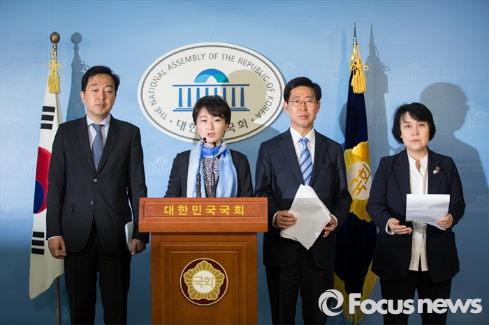 (서울=포커스뉴스) 양승조(오른쪽 두번째) 더불어민주당 가습기 살균제 특위 위원장이 5일 서울 여의도 국회 정론관에서 진상 파악을 위한 성명서를 발표하고 있다.