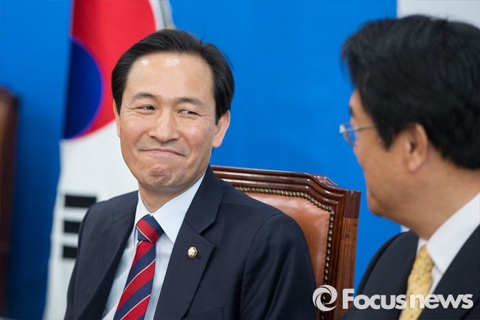 | △ 정진석 바라보며 웃는 우상호 |