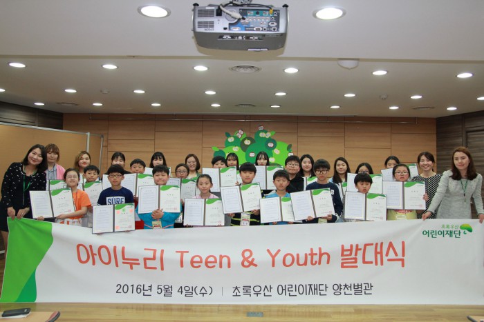 '아이누리Teen'은 아동 주체의 자발적 참여를 통해 스스로의 권리의식을 키우고 아동권리에 대한 사회적 관심을 확산시키기 위한 것으로 초등학교 4~6학년 학생들로 구성됐다.