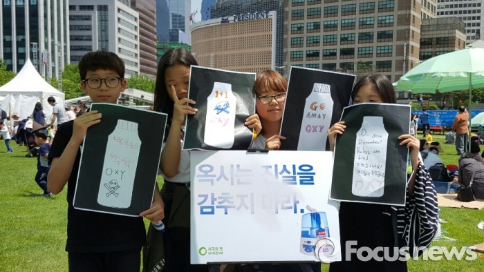 (서울=포커스뉴스) 환경운동연합은 5일 어린이날을 맞아 서울 시청광장에서 어린이를 대상으로 한 옥시 제품 불매 캠페인을 열고 옥시 제품 불매운동 동참을 촉구했다.