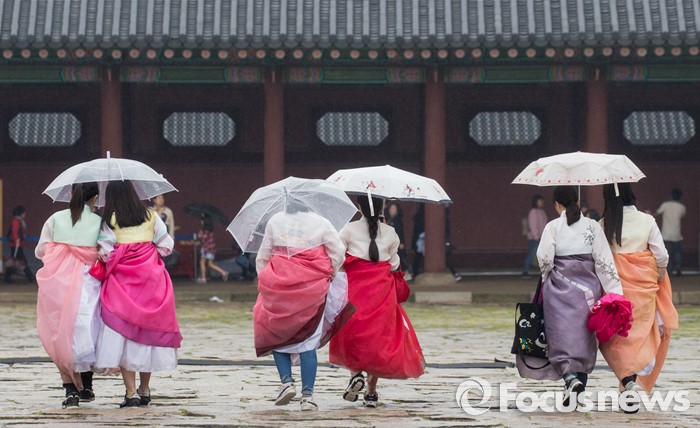 (서울=포커스뉴스) 임시공휴인인 6일 오후 서울 경복궁을 찾은 시민 및 관광객들이 궂은 날씨 속에 궐내 경치를 즐기고 있다.