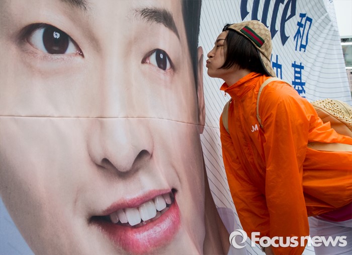 (서울=포커스뉴스) 6일 오후 서울 반포한강공원에서 열린 삼계탕 파티에 참석한 중국 건강보조제품 회사 중마이그룹 직원들이 배우 송중기 현수막 앞에서 기념촬영을 하고 있다. 이날 한강공원을 찾은 4천여명의 중마이그룹 직원들은 삼계탕 파티와 태양의 후예 OST 미니 콘서트 등을 즐겼다.