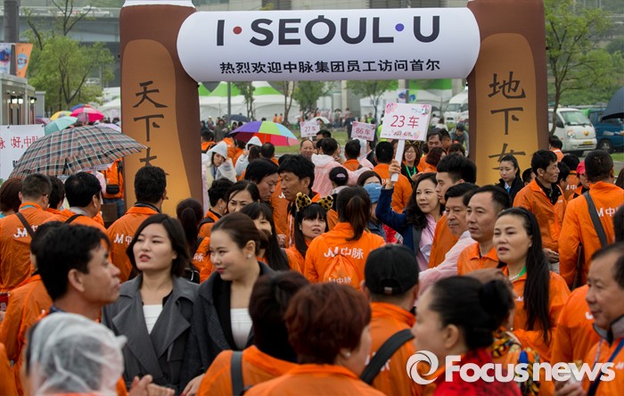 이날 오후 6시 중국의 건강보조제품 제조회사 중마이과학발전유한공사 임직원 4000명이 주황색 바람막이 재킷을 맞춰 입고 반포 한강공원 달빛광장에 모였기 때문이다. 삼계탕 파티와 태양의 후예 OST 콘서트를 즐기려 이곳을 찾은 임직원들의 얼굴엔 설렘이 가득했다.