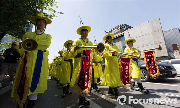 (서울=포커스뉴스) 7일 오전 서울 구로구 궁동저수지생태공원 일대에서 '정선옹주 시집가는 날' 참가자들이 퍼레이드를 하고 있다. 정선옹주는 조선 14대 임금인 선조와 후궁 정빈 민씨의 딸이다.