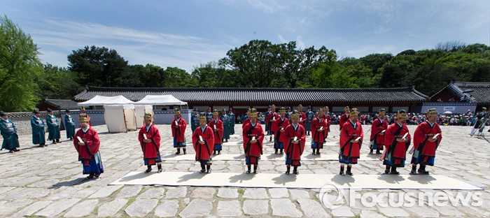 (서울=포커스뉴스) 7일 오후 서울 종묘 정전에서 열린 '조선의 세자빈 혼례를 고하다' 행사에서 참가자들이 묘현례를 재현하고 있다. 묘현례는 왕비나 세자빈이 왕실 혼례를 마친 후 조선왕조 역대 왕가 왕비의 신주가 모셔진 종묘를 알현하는 의례로서 조선시대 종묘에서 행해지는 국가의례 중 왕실 여성이 참여하는 유일한 행사이다.