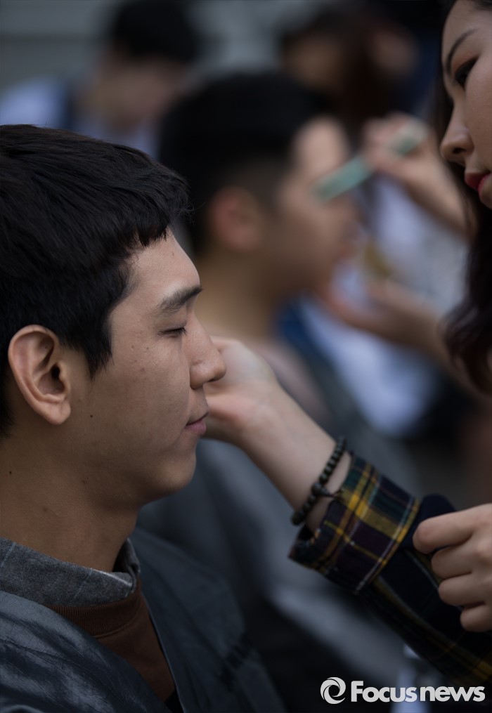 △ 메이크업 받는 남성 참가자들