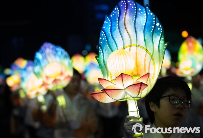 (서울=포커스뉴스) 부처님 오신날을 일주일 앞둔 7일 오후 서울 종로구 흥인지문부터 시작해 조계사까지 이어지는 화려한 연등 행렬이 펼쳐지고 있다.