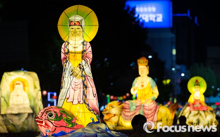 (서울=포커스뉴스) 부처님 오신날을 일주일 앞둔 7일 오후 서울 종로구 흥인지문부터 시작해 조계사까지 이어지는 화려한 연등 행렬이 펼쳐지고 있다.