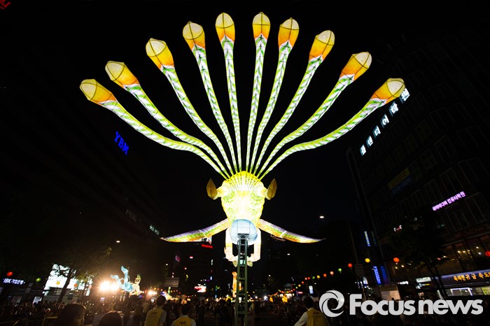 (서울=포커스뉴스) 부처님 오신날을 일주일 앞둔 7일 오후 서울 종로구 흥인지문부터 시작해 조계사까지 이어지는 화려한 연등 행렬이 펼쳐지고 있다.