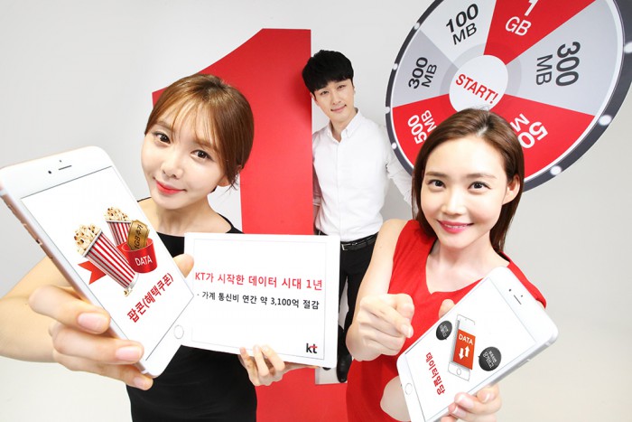 강국현 KT 마케팅부문장은 “KT는 1년 전 국내 최초 데이터 선택 요금제를 선보이고 다양한 혜택 서비스로 데이터 시대를 주도적으로 이끌어 왔다”며 “앞으로도 20대 초반을 위한 Y24 요금제, 무선에서 기가급 속도를 제공하는 기가LTE와 같은 차별화된 서비스를 지속 선보이며 고객 혜택 강화를 위해 최선을 다할 것”이라고 밝혔다.KT가 데이터 요금제 출시 1년만에 500만 고객이 가입했고 3100어원의 가계통신비 절감효과가 있었다고 8일 밝혔다.<사진제공=KT>