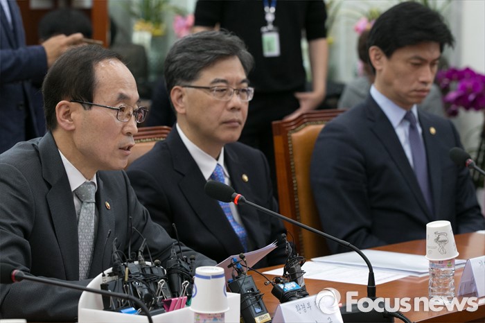 (서울=포커스뉴스) 윤성규(왼쪽) 환경부 장관이 8일 오후 서울 여의도 국회에서 열린 가습기살균제 피해 대책 당정협의에 참석해, 발언하고 있다.