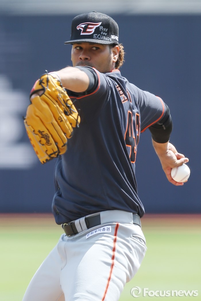 △ 올 시즌 첫 등판한 한화 선발투수 로저스의 투구